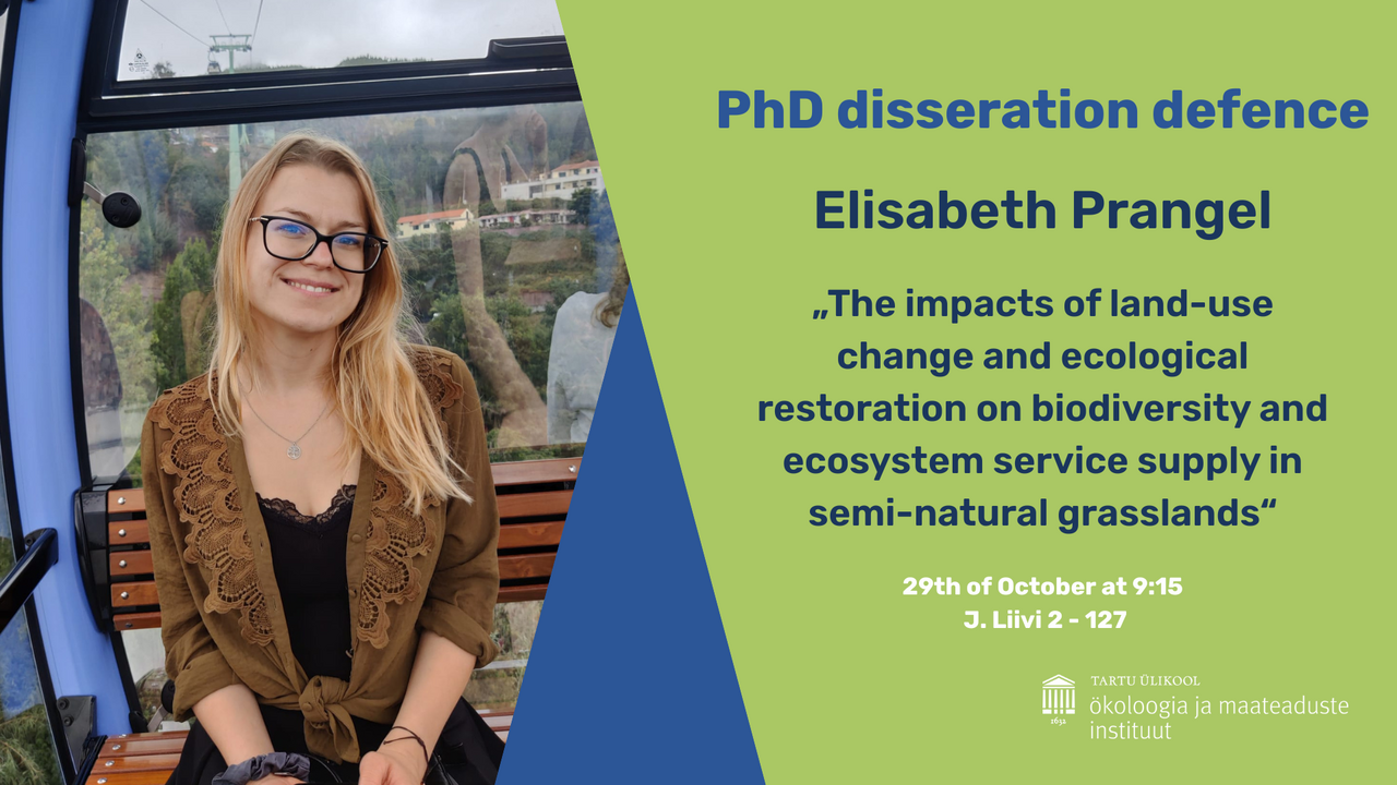 Doctoral defence: Elisabeth Prangel "The impacts of land-use change and ecological restoration on biodiversity and ecosystem service supply in semi-natural grasslands"